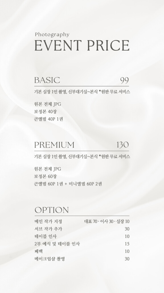 From bespoke shooting plans to premium archival albums. Explore our transparent service modules and high-end products designed for your lasting memories.